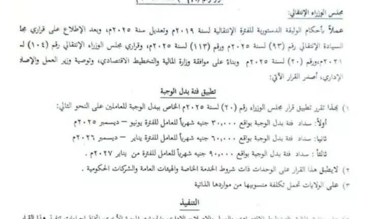 وبحسب القرار يتم إعادة نفس المبلغ الى 90 ألف فى العام 2027م، صدر القرار بتاريخ 27 مايو 2025 ممهور بتوقيع رئيس الوزراء المكلف عثمان حسن إلا أنه لم يتم الإعلان عنه إطلاقا إنما تم تنفيذه بالخصم من مرتبات العاملين لشهر يونيو.