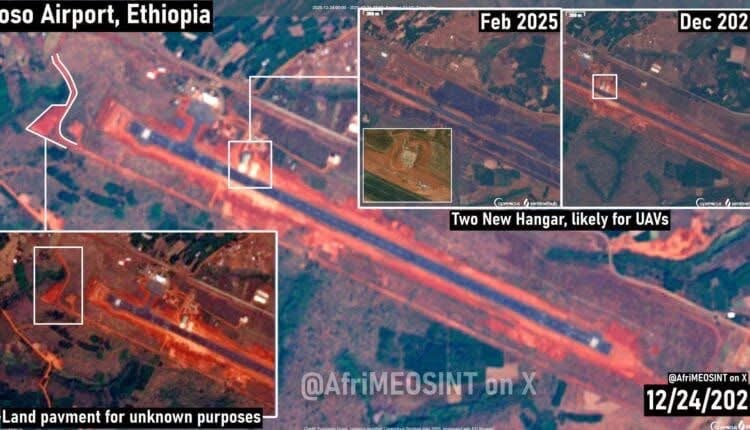 وأكد أن صور الأقمار الصناعية المرفقة من مطار أصوصا لا تكذب حيث تظهر حظيرتان جديدتان يُرجّح تخصيصهما للمسيّرات، أعمال تجهيز أرضي ومهابط، موقع ملاصق للحدود السودانية وفي توقيت ليس بريئًا، تدريب وإمداد مباشر، خطوط لوجستية عبر بربرة ومومباسا، تنسيق استخباري متعدد الأطراف، مرتزقة أجانب وطائرات مسيّرة انطلقت فعلًا لاستطلاع النيل الأزرق.