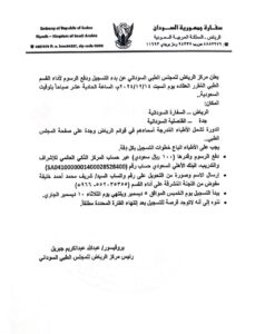 أعلن المجلس الطبي السوداني عن بدء التسجيل ودفع الرسوم لأداء القسم الطبي المقرر انعقاده يوم السبت الموافق 14 ديسمبر 2024 م بسفارة السودان بالمملكة العربية السعودية والقنصلية السودانية بجدة وبحسب الإعلان فرض المجلس الطبي مبلغ 100 ريال سعودي للجلوس لأداء القسم حيث يبدأ التسجيل يوم الخميس الموافق 5 ديسمبر وينتهي 10 ديسمبر.