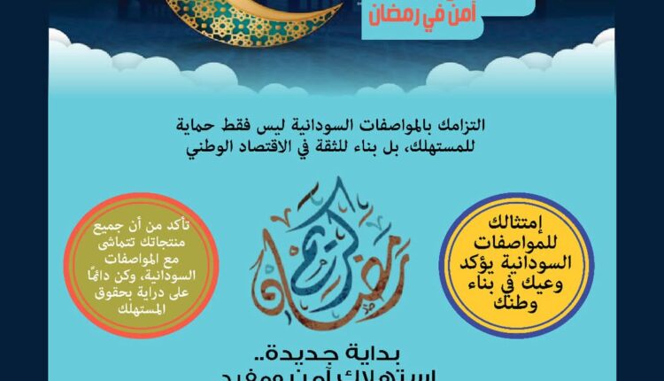 – أعلنت الهيئة السودانية للمواصفات والمقاييس إنطلاق حملتها القومية السنوية للتوعية ونشر ثقافة التقييس تحت شعار : نحو مستهلك آمن في رمضان .