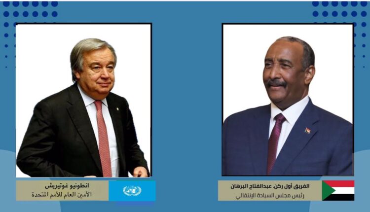 البرهان : يتلقى إتصالاً هاتفياً من الأمين العام للأمم المتحدة