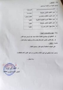 اللجنة، التي يرأسها مدير التعليم الثانوي بالوزارة، تضم في عضويتها عددًا من القيادات التربوية وممثلًا عن جهاز الأمن الداخلي، وقد كُلّفت برفع تقريرها خلال 24 ساعة من تاريخ صدور القرار.