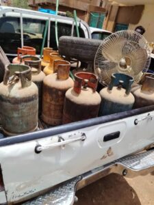 وأثناء التمشيط وردت معلومة للقوة تفيد بوجود (إسطوانات غاز) بأحد أندية المشاهدة، كان أفراد المليشيا المتمردة يستغلونه في تجميع منهوبات المواطنين.