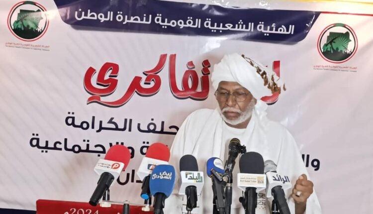 وقال الضيف خلال مخاطبته اللقاء التفاكري مع مكونات حلف الكرامة و التنسيقات القبلية والإجتماعية بالسودان الذي نظمته الهيئة الشعبية القومية لنصرة الوطن بقيادة الشيخ أحمد الصالح صلوحة ، أنهم قلباً وقالبا مع الدولة السودانية والقوات المسحلة المنصورة باذن الله في كافة المحاور والمناطق بدغم الرجال الأوفياء من أبناء السودان الواحد المتحد .