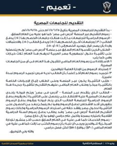 – بدأ التقديم للجامعات المصرية بتاريخ 25/6/2025م حتى 25/9/2025م