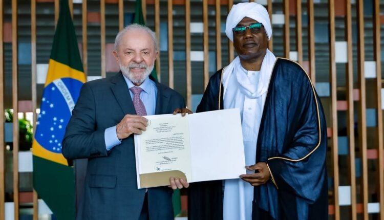 – قدّم السفير د. أحمد التجاني سوار مؤخرا أوراق اعتماده إلى فخامة الرئيس لويس إيناسيو لولا دا سيلفا، رئيس جمهورية البرازيل الاتحادية، سفيراً فوق العادة ومفوضاً لجمهورية السودان لدى جمهورية البرازيل.