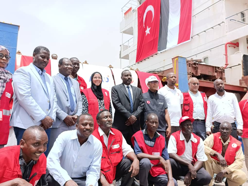 أعلن ممثل الحكومة السودانية وزير الاعلام والثقافة د. جراهام عبدالقادر عن وصول بأخرة تحمل على متنها مواد غذائية وأدوية وملابس دعم من الهلال الاحمر التركي للشعب السوداني يقدر ب٢٤٠٠ طن .