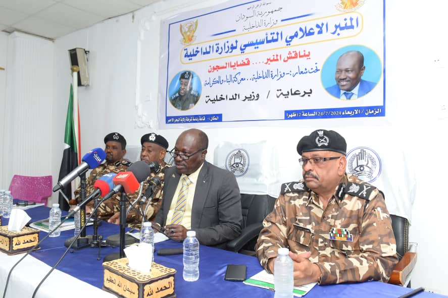 إنعقد بقاعة شرطة ولاية البحرالاحمر اليوم المنبر التأسيسى لوزارة الداخلية الخاص بقضايا السجون والذي يجى تحت شعار(وزارة الداخلية ،، معركة البناء والكرامة) وأوضح اللواء شرطة(م) خليل باشا سايرين وزير الداخلية المكلف خلال مخاطبته المنبر ان إطلاق سراح النزلاء من السجون بواسطة المليشيا المتمردة له تأثيرات سالبة علي الوطن والمواطن بسبب مشاركة العديد من هؤلاء النزلاء فى الحرب إلى جانب التمرد ، مبينا ان مشاركته الاخيرة في اجتماعات الامم المتحدة بنيويورك تم عقد اجتماع ثنائى مع مدير مكتب الامم المتحدة لمكافحة الإرهاب وتقديم قائمة تفوق المائة شخص من الإرهابيين الذين اطلقت المليشيا المتمردة سراحهم كانو موجودين في السجون وذلك في إطار التعاون والتنسيق مع الامم المتحدة حتي يتم البحث وضبط هؤلاء الإرهابيين سواء الموجودين مع المليشيا المتمردة او الذين فرو الي دول الجوار مما يشكلةد تهديدا للمجتمع وامنه واستقراره ، كاشفا عن خطة لتحويل النزلاء بسجون ولايات التماس للولايات الامنه ، داعيا الي اطلاق المبادرات الداعية الي اطلاق سراح النزلاء الغارمين من اصحاب الاحكام البسيطة ، مبينا ان السجون لها اتفاقيات وقوانين دولية واقليمية في مجالات حقوق الإنسان والسجون السودانية تعمل وفق تلك القوانين