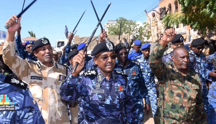 وأعلن أن الشرطة ستباشر عمليات الأمن الداخلي وفقاً للدستور، متعهداً بإعادة الحياة المدنية إلى طبيعتها،مؤكداً أن رئاسة الشرطة وفرت المعينات اللازمة من المركبات وأجهزة الاتصالات ومعدات العمل الشرطى، فيما امتدح الأستاذ الطاهر إبراهيم والي ولاية الجزيرة المكلف دور قوات الشرطة في استرداد مدينة ود مدني، ممتدحاً انتشار قوات الشرطة بولايته والدعم الكبير الذي قدمته الشرطة لولاية الجزيرة، وقال اللواء الركن عوض الكريم علي سعيد قائد الفرقة الأولى تناول مجاهدات قوات الشرطة في تحرير مدني، معلناً أنهم وقفوا مع القوات المسلحة كتفاً بكتف وقدموا عدداً من الشهداء والجرحى، وبدوره أكد اللواء عبد الآله على احمد مدير شرطة ولاية الجزيرة اشار إلى جاهزية قوات الشرطة لتعزيز الأمن والاستقرار مشيرا إلى إنتشار الشرطة عبر الارتكازات وتفعيل عمل الأقسام بمدينة مدني.