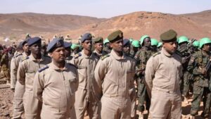 شهد السيد رئيس مجلس السيادة الإنتقالي القائد العام للقوات المسلحة الفريق أول ركن عبد الفتاح البرهان بالمرخيات صباح اليوم، ختام فعاليات تمرين (عزم الرجال) الذي نفذه دارسو دورتي القوات الخاصة والطيران المسير.