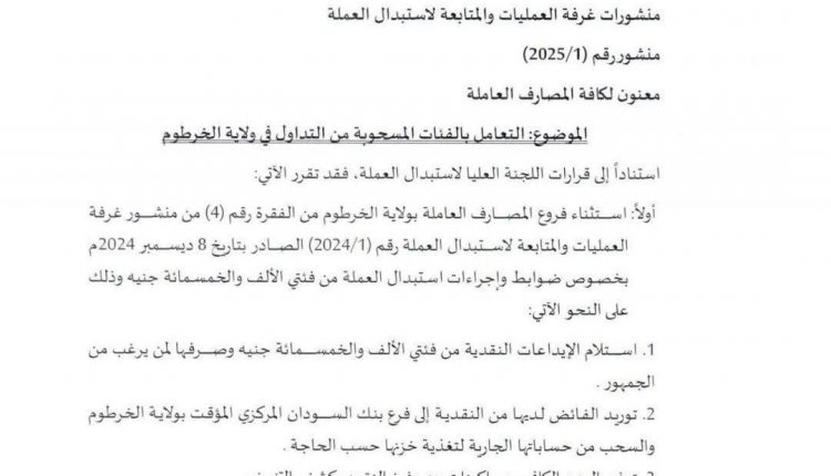 أصدرت غرفة العمليات والمتابعة لاستبدال العملة بنك السودان ضوابط وإجراءات جديدة بخصوص استبدال العملة من فئتي الالف والخمسمائة جنيه وذلك على النحو التالي: