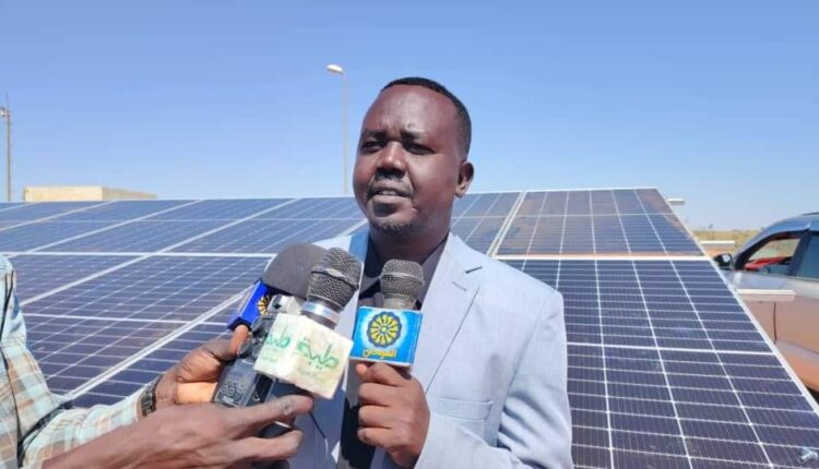 دشن تركيب منظومات الخلايا الشمسية لأبار القطاع الغربي بهيئة الخطوط الناقلة للمياه بمصادر مياه النهود بتمويل بلغت قيمته 110 ملايين جنيها من بنك النيل بالنهود.