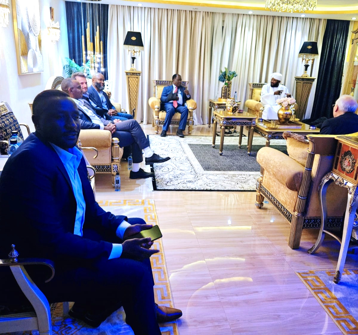 إستقبل السلطان أحمد دينار سلطان دارفور السفير دونالد بوث المبعوث الأمريكي السابق للسودان ومستشار برنامج الغذاء العالمي بشرق افريقيا ضمن وفد من الخبراء والمستشارين وذلك للبحث حول آفاق حل الأزمة السودانية والتداعيات الإنسانية ولبلورة رؤية تسهم في تسريع جهود الحل وتدعم الأمن والسلم .