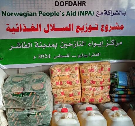 قام عدد من المتطوعين من منظمة دارفور بتوزيع سلال غذائية للأسر النازحة بمركز إيواء مدرسة ذات النطاقين بمدينة الفاشر بولاية شمال دارفور التي تشهد منذ عدة اشهر حصار كبير .