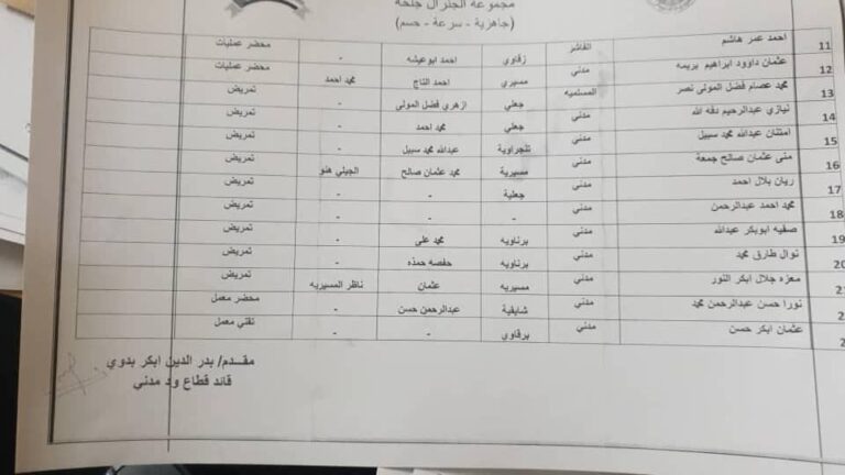 نشرت قوات العمل الخاص مجموعة من الوثائق التي تم العثور عليها برفقة المقدم بدوي أبكر بدوى، وتحمل الوثائق شعار وترويسة قوات الدعم السريع، مجموعة الجنرال جلحة، وباعتماد وتوقيع اللواء بدر الدين ابكر بدوى قائد قطاع ود مدني.