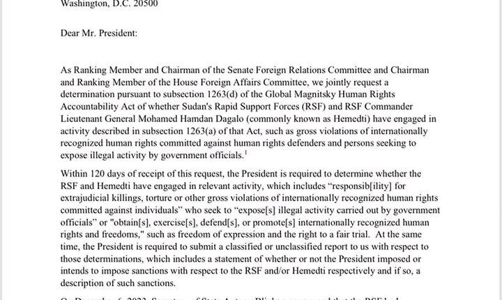 منح االكونغرس الأمريكي الرئيس جو بايدن فرصة (120) يوم لفرض عقوبات على قائد مليشيا الدعم السريع حميدتي و قواته المتورطة في انتهاكات حقوق الإنسان في السودان بناء على قانون ماغنيتسكي لحقوق الإنسان الامريكي.