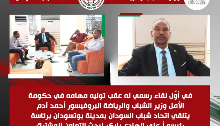 في أول لقاء بعد توليه مهامه.. وزير الشباب والرياضة يعلن دعمه المطلق لاتحاد شباب السودان ويدشن قريبًا مبادرات إعمار الوطن*
