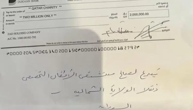 في خطوة انسانية تعبر عن دور المجتمع السوداني في إعادة إعمار السودان، تبرع مواطن سوداني محمد زيادة طه ، مقيم بدولة قطر بمبلغ 2 مليون ريال قطري مايعادل (مليار و350 مليون سوداني).