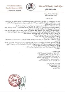 ‏بيان ازالة سيليمان صندل حقار من حركة العدل والمساواة السودانية باعفائة من رئاسة مهام الحركة !!