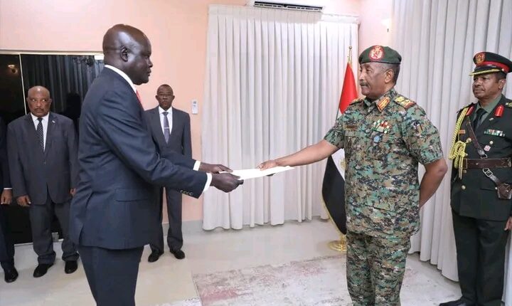 وقال سفير دولة الجنوب في تصريح صحفي أنه نقل لرئيس مجلس السيادة تحيات شقيقه الفريق سلفاكير ميارديت رئيس دولة جنوب السودان .