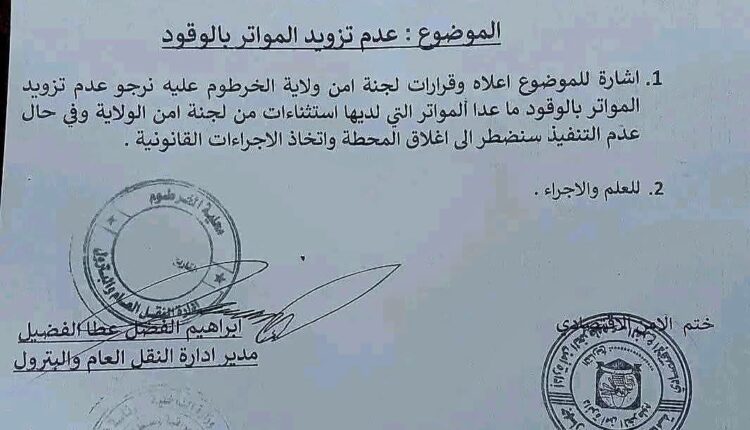 متابعة – الجمهورية نيوز- أصدرت لجنة أمن ولاية الخرطوم، قرارًا قضى بمنع تزويد الدراجات النارية (المواتر) بالوقود، باستثناء الحالات التي تحمل تصاريح رسمية، وذلك تنفيذا لقرار اللجنة العليا لتهيئة البيئة لعودة المواطنين، الذي منع تحرك الدرجات النارية في العاصمة.