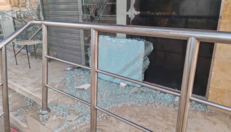 وتم اخطار المواطنين بانتهاء الكاش بالبنك وتم إغلاق الابواب وبصورة مفاجأة اقتحم المواطنين البنك وأتلفوا الابواب وتمت تكسير زجاج الابواب .