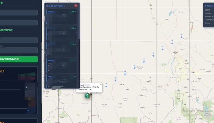 ونوهت إلى أن وزن الرأس الحربي 25 كيلوجرامًا كمتوسط حمولة بنطاق تأثير متوقع عند الإصابة في حدود 10 أمتار، وحددت البرمجية المسار الأمثل والمتوقع وكامل خط الطيران Fly Path للمسيرات الهجومية مع الانحرافات في المسار.