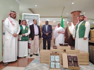 بتشريف. وزير التنمية الاجتماعية وبحضور السفير السعودي علي بن حسن جعفر دشنت مفوض العون الانساني السوداني الاستاذة /سلوي ادم بنية ببورتسودان اليوم الحادي عشر من مارس ٢٠٢٤م الذي يصادف اول ايام شهر رمضان المعظم للعام ١٤٤٥هجرية ، هدية رمضان المقدمة من مركز الملك سلمان للإغاثة والأعمال الانسانية والتي هي عبارة (١٥٣٠٠) كرتونة من التمور .