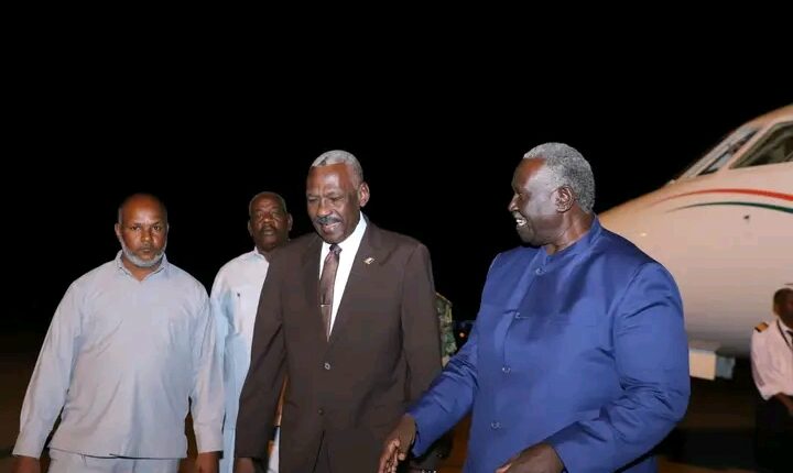 وكان في إستقباله بمطار بورتسودان الدولي وزير الدفاع الفريق الركن يس إبراهيم وعدد من المسؤولين بالدولة .