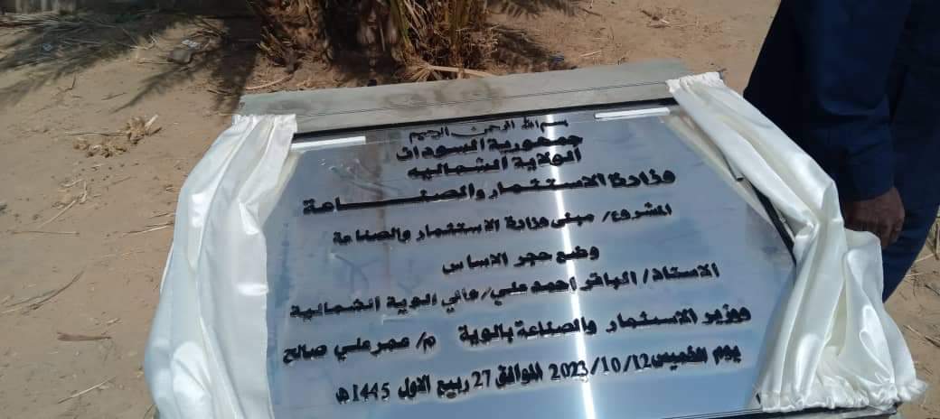 كما قام الوالي بوضع حجر الأساس لمبني وزارة الاستثمار والصناعة الجديد في مساحة 10 ألف متر مربع، وأكد رئيس المجلس الأعلى للاستثمار في تصريح لسونا أن هذه المشروعات تمثل إضافة قوية وبداية جادة نحو ترقية وتطوير قطاع الاستثمار وإحداث التنمية والنهضة المنشودة بالولاية، وأشار إلى أن الولاية أصبحت الآن جاهزة لاستقبال المستثمرين والمؤسسات والشركات للاستثمار في القطاعات الزراعية، الصناعية والخدمية.