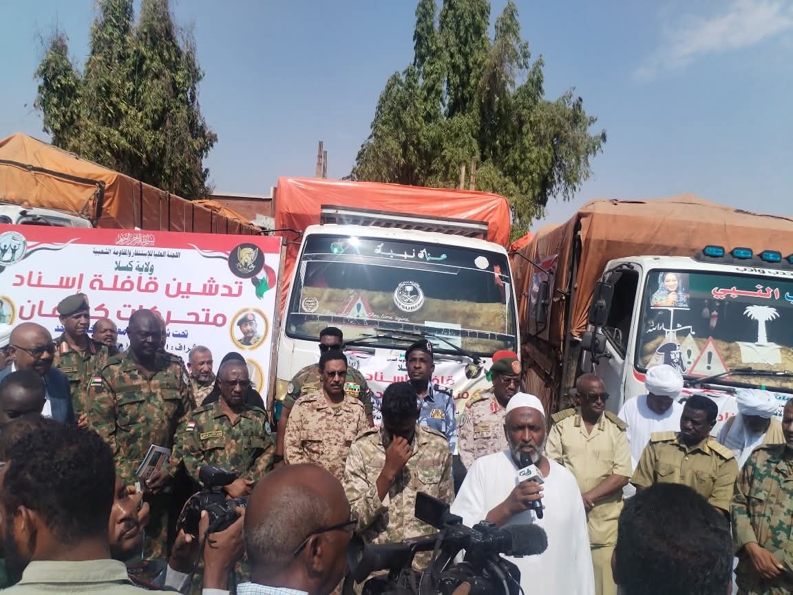 وأكد والي كسلا تعافي المقاومة الشعبية لتكون حاضنة قوية للسودان، قائلا:”سندفع بكل ما نملك من اجل تماسك القوات المسلحة ليبقى السودان شامخا”، واضاف:”نتمنى ان يرفع الله البلاء عن السودان وتتوقف الحرب ويتطور وطنا”، وتقدم بالشكر من ساهم في القافلة.