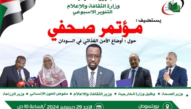 تعقد وزارة الثقافة والإعلام مؤتمرا صحفيا يتناول أوضاع الأمن الغذائي في السودان يتحدث فيه كل من
