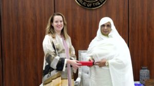بورتسودان الجمهورية نيوز – بحثت وزيرة شؤون مجلس الوزراء د. لمياء عبدالغفار لدى لقائها اليوم بمكتبها مديرة منظمة الهجرة الدولية إيمي بوب سُبل التنسيق مع المنظمة لتقديم الدعم اللازم للنازحين بمعسكرات النزوح خاصة النازحين من مدينة الفاشر عقب الإنتهاكات والجرائم التي إرتكبتها مليشيا الدعم السريع مؤخراً بحق مواطني المدينة.