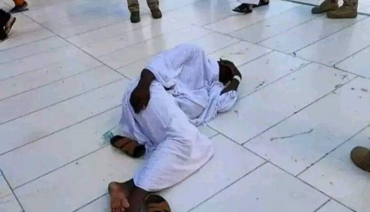 حيث تداول ناشطون صورة للحاج السوداني وهو ملقي في صحن الكعبة عقب وفاته.