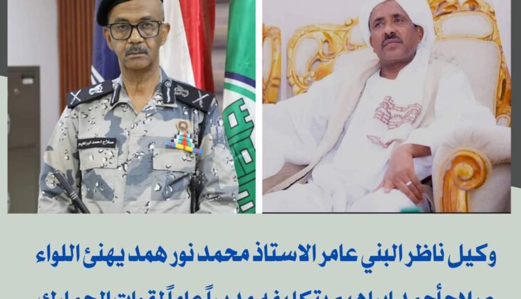 وكيل ناظر البني عامر يهنئ اللواء صلاح أحمد إبراهيم بتكليفه مديراً عاماً لقوات الجمارك